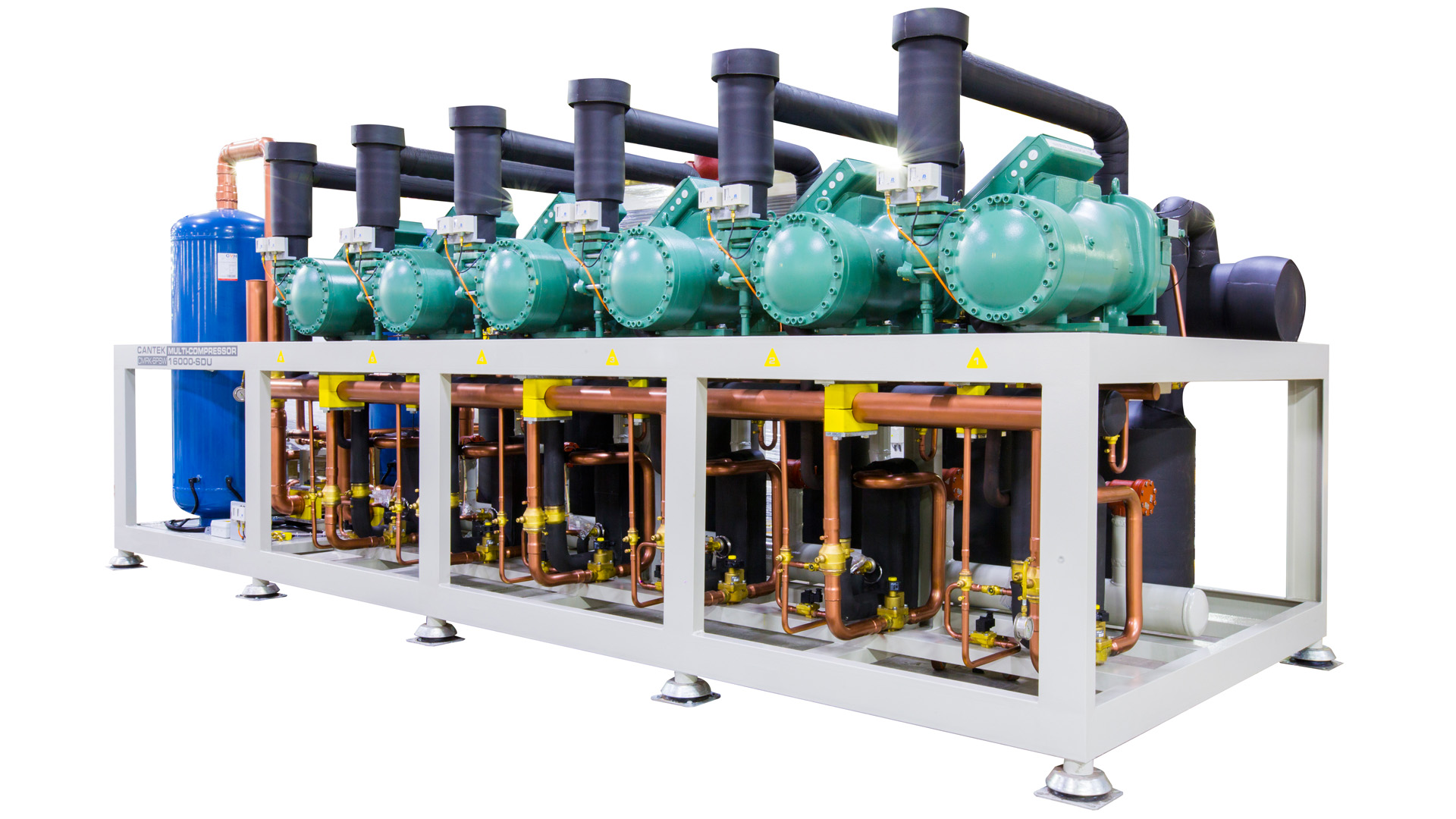 Cantek produce unidades de enfriamiento con refrigerantes de Dióxido de Carbono, Amoníaco, Glicol, Propano y Freón, y garantiza una configuración óptima de la máquina.